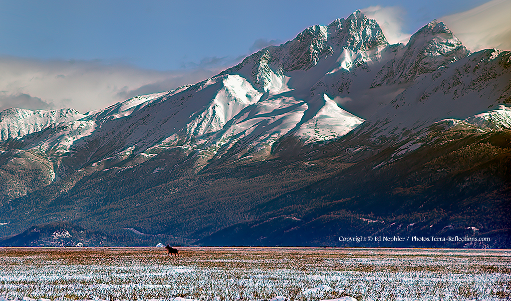 Palmer Hay Flats – Mount POW and Twin Peaks and a Moose
